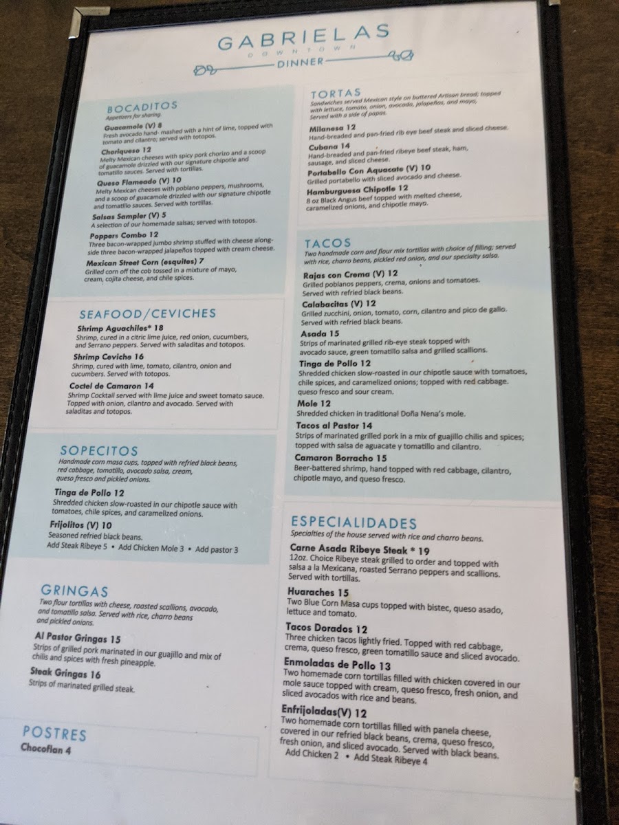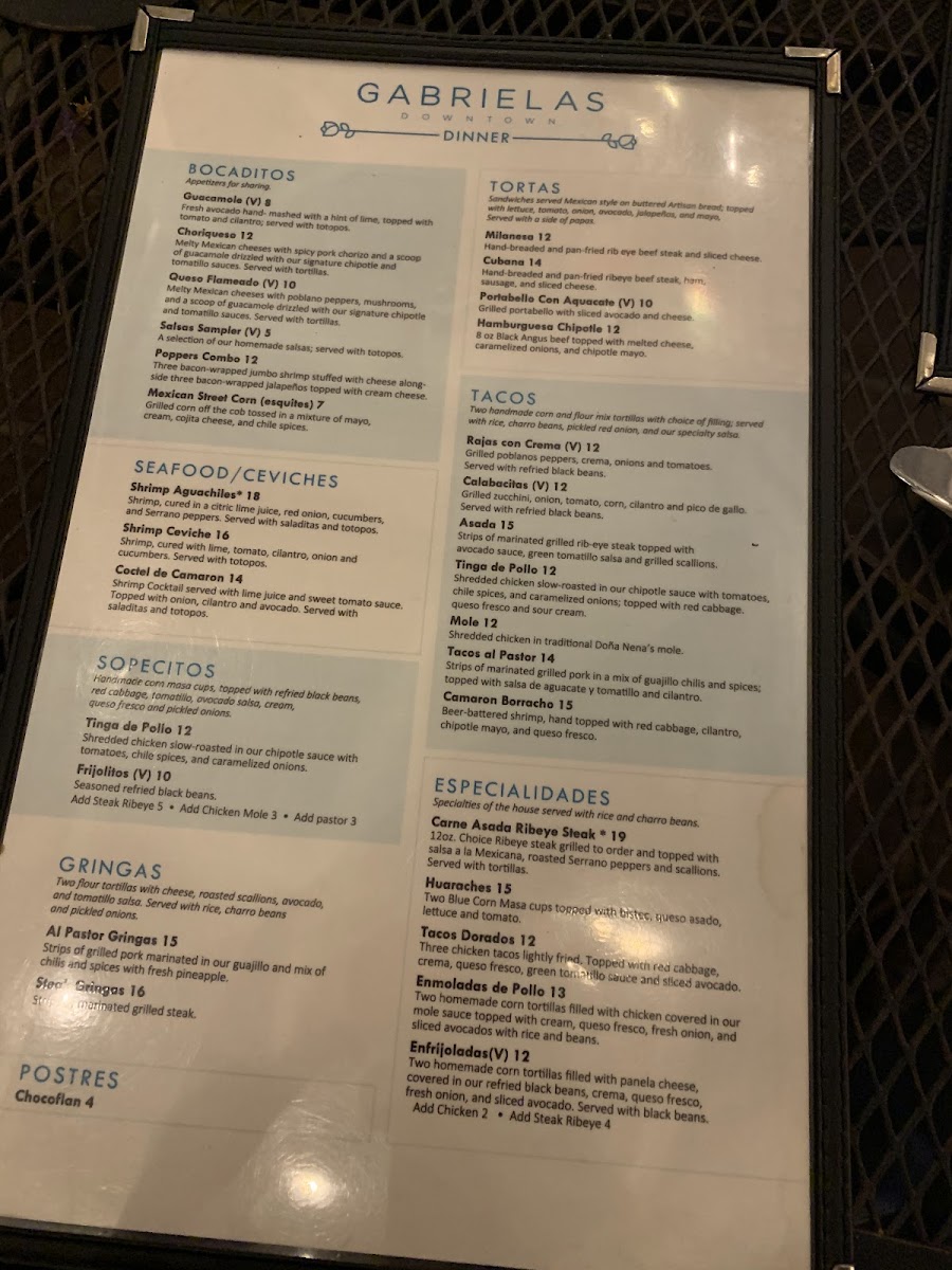Gabrielas Downtown offers a menu that feels both approachable and rich with authentic Mexican flavors. The selection leans toward casual bites and comforting dishes that suit a range of occasions, from lively brunches to relaxed evenings at the bar. Here, you can enjoy traditional favorites like Birria Tacos or Choriqueso alongside fresh, vibrant dishes such as Shrimp Ceviche and Mexican Street Corn Esquites.
